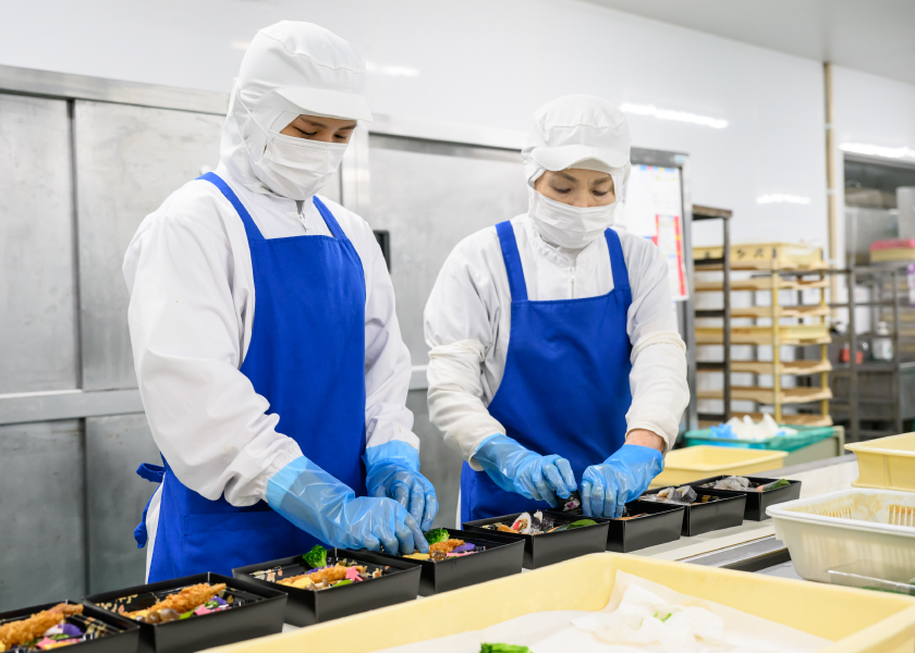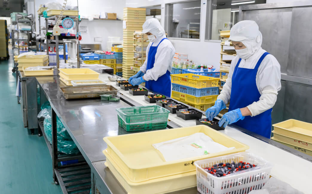寿司・お弁当・惣菜の製造や盛り付け作業を担当します。主な業務は、コンベアに流れてくる容器におかずや食材を詰めていく流れ作業が中心。手順が決まっているので、未経験の方でもすぐに慣れていただけます。